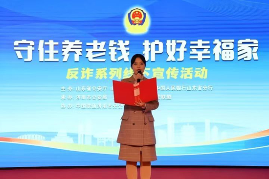 10月24日,由山东省公安厅、山东省通信管理局、中国人民银行山东省分行联合主办,济南市公安局承办,中国联通济南市分公司协办的“守住养老钱 护好幸福家”反诈线下宣传志愿服务活动,在济南市历城区王舍人街道恒大城社区居委会举行。活动聚焦老年人群体,通过形式多样、内容务实的宣传方式,有效提升群众特别是老年群体的识骗、防骗、拒骗能力,为老年朋友送上精准发安全防范指南。