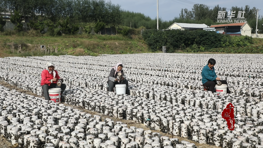 近日,在山东省日照市东港区西湖镇,黑木耳进入收获期。一排排菌棒整齐排列,黑亮饱满的木耳在菌袋上竞相“绽放”,农户们在忙着采摘,现场一派丰收的景象。