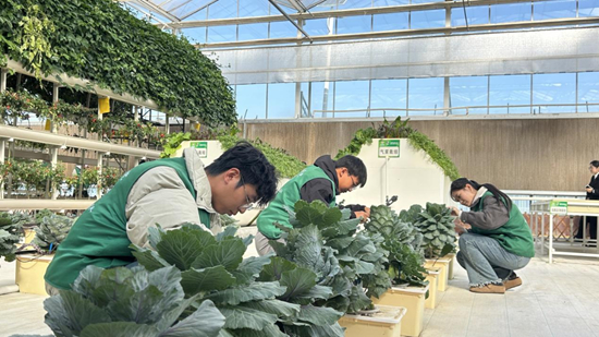 讲解结束后,志愿者迅速变身“环保卫士”,分成栽培区清洁组和废弃物处理组开启忙碌的志愿工作。栽培区清洁组的志愿者走进智能联动温室和冬暖式大棚,仔细清理着残留的基质和枯枝落叶,并分类装袋投放到园区指定环保回收点;废弃物处理组的志愿者收集蔬菜残叶、根茎等农业废弃物,运输至资源化处理区,按“无杂质、无病害”标准完成堆肥前期分拣;工作人员不时巡回指导,认真记录着志愿者们的工作成效,园区里处处是热火朝天的劳动景象。