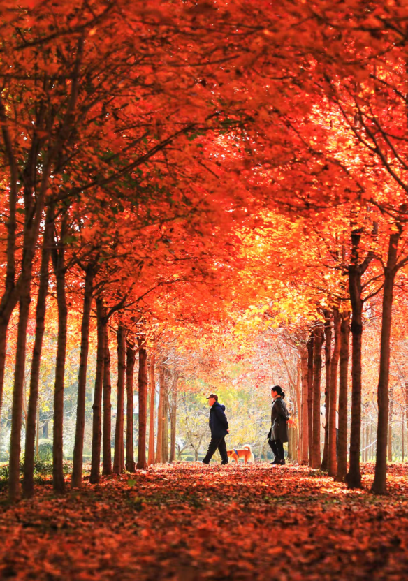 公园内仿佛被红枫铺满,风一吹,连空气都裹着暖融融的秋意。刘宗丽 摄