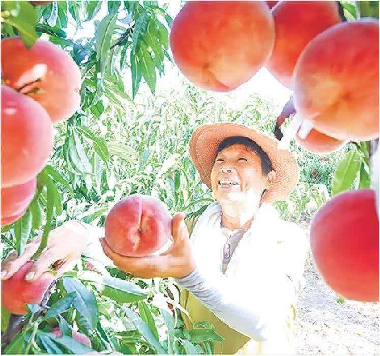 阳谷县博济桥街道东马庄村,果农正在采收晚熟蜜桃新品种“天宫”。