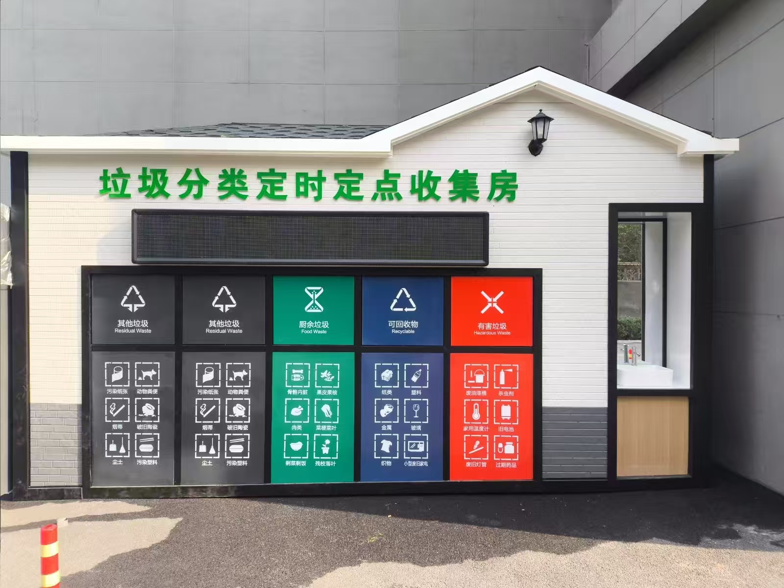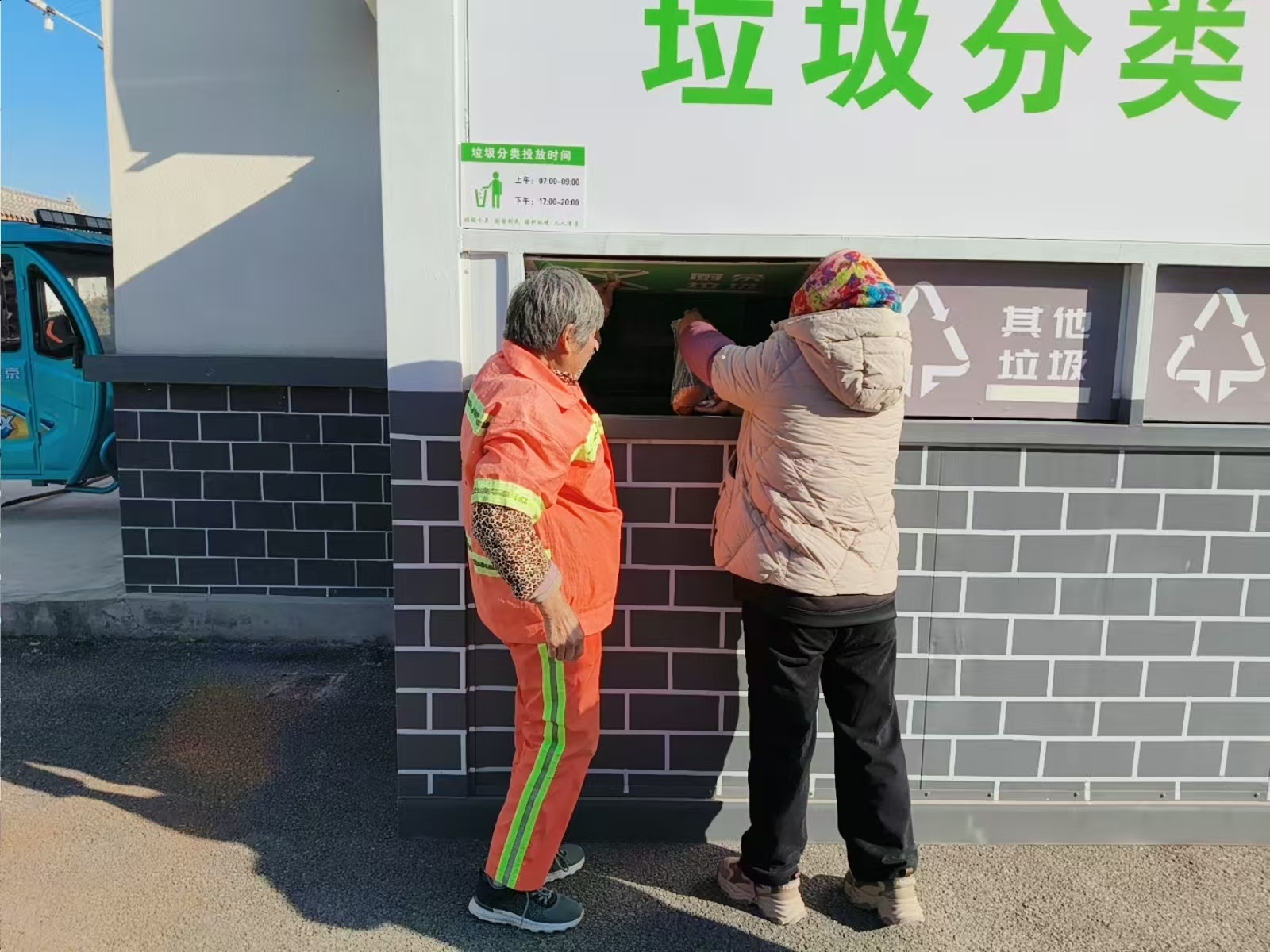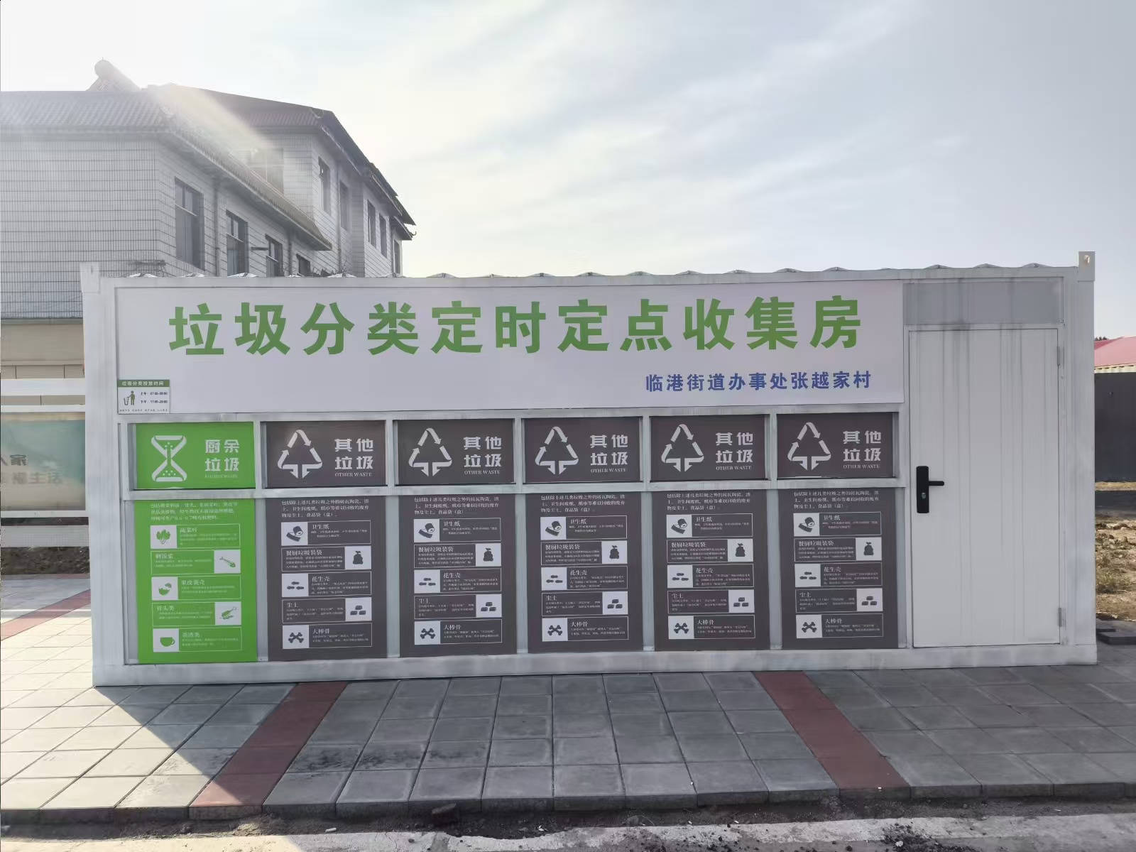 街道以“撤桶并点+设施改造”夯实分类基础。有序推进“撤桶并点”,结合村居布局与居民投放习惯,撤销零散垃圾桶,整合设置集中规范的“垃圾分类定时定点收集房”,既减少垃圾散落污染,又便于集中管理。同时推进设施升级,昔日“脏乱差”的投放点变身标准化驿站,根据不同点位需求配备洗手池,解决居民投放垃圾后脏手的问题;针对厨余垃圾,设置专用密闭收集箱并实行定时清运,有效减少异味;合理划分各类垃圾投放区域,搭配清晰指引标识,方便居民快速识别分类。