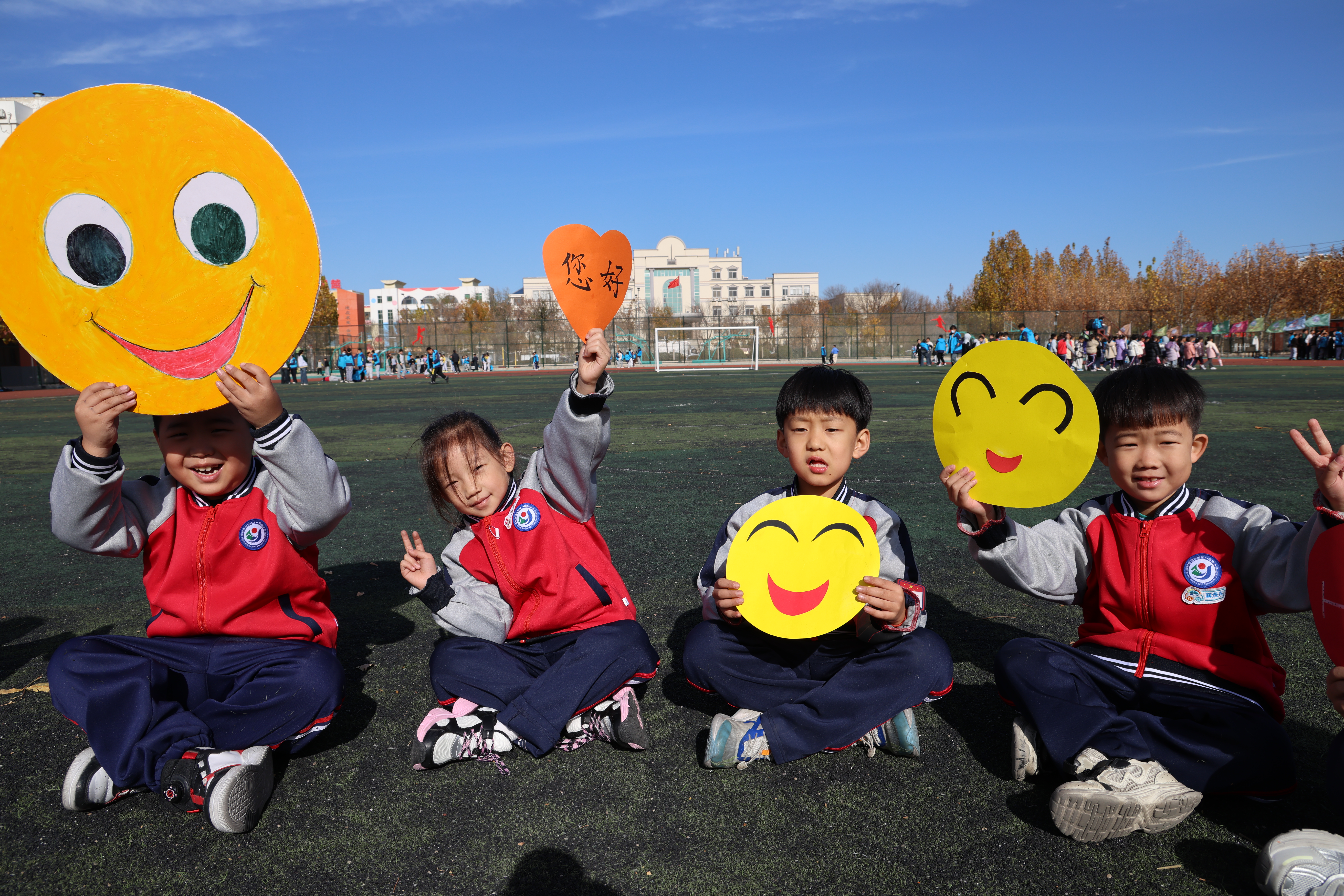 11月20日,山东省滨州市沾化区第一实验小学开展“一句问候暖人心”主题活动。课堂上,一年级的学生跟着老师学习“你好”“谢谢”的礼貌用语,操场上,孩子们用笑脸道具和同班互动问候,用最明媚的笑容传递问候的温暖。(卞俊涵)