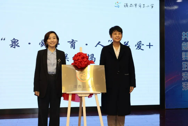会上,市中区教育教学研究中心家庭教育教研员孙艳艳与舜玉小学校长朱娜共同为“泉·舜·育·人”关爱+教联体揭牌。