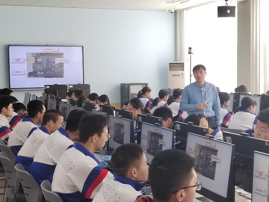本次活动兼顾多重教研目标,交流维度全面深入。在区域教研层面,济南二中、济南七中、济钢高中等兄弟学校教师现场听课,课后围绕课堂设计、教学实施、素养落地等关键环节展开细致研讨,碰撞教学思路,助力提升区域信息技术教学水平;特别邀请了济南三十四中教师参与交流,聚焦初高中贯通培养,为学生持续发展筑牢衔接基础;在跨学科融合层面,学校物理学科部分教师全程参与,共同探讨跨学科教学的融合切入点、课程设计思路,为拓宽教学视野、推进跨学科育人实践积累经验。