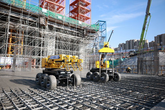 截至目前,这位机器人“振捣大师”已高效完成I区、H区全部底板施工任务,浇筑面积总计近1.7万平方米,混凝土方量约1.14万立方米。质量检测显示,底板混凝土密实度合格率达100%,较传统人工施工效率提升30%以上,同时减少了30%的现场作业人员。