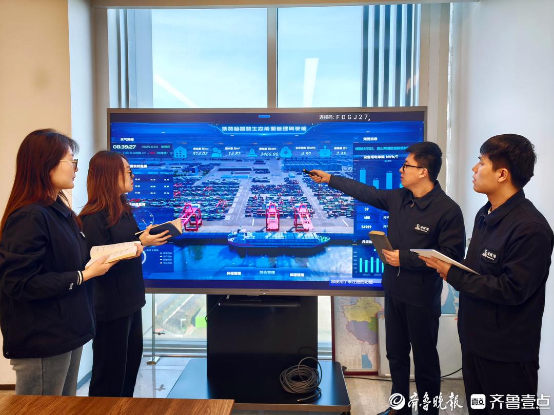 硬件设施不断升级的同时,软件系统的智慧赋能同样关键。“新上线的集装箱智慧能源生态管理系统就像连接能源与生产的‘桥梁’,也是高效用能的‘智慧大脑’。”日照港集装箱分公司IT部经理马龙涛说道。系统可实时监测分析水、电、油及岸电等多项数据,实现多维能耗分析、生产能效关联以及碳排放核算等,为港口绿色发展提供精准支撑。