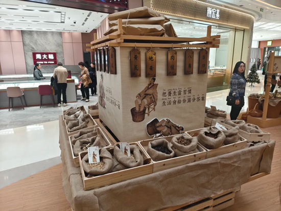 活动现场选址龙湖北宸天街一楼大厅,温馨实用的展区布局吸引了大批市民驻足参与。市集精心设置四大核心展台,全方位呈现中医药“可观、可触、可感”的独特韵味。在煲汤原料区,黄芪、茯苓、枸杞、山药等药食同源食材装满麻布袋整齐陈列,现场提供排骨药膳汤、养生羊汤等经典配方参考,市民可直观学习食材搭配技巧;外治产品区内,活血化瘀、驱寒祛湿的足浴包备受青睐,健康顾问逐一讲解成分功效,方便市民按需选购;养生茶饮墙上,玫瑰当归养血茶、黑芝麻枸杞源力茶等5款便携茶饮包琳琅满目,展区中央的品尝小屋更提供现煮茶饮与五白糕、五黑糕等药膳小食,免费供市民品鉴体验;中医诊疗区则由医院专业医师坐阵,提供免费把脉问诊、体质辨识、个性化调理建议,理疗师现场开展推拿服务,为肩颈不适的上班族舒缓疲劳,成为市集人气最旺的区域之一。