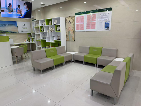 特色便民服务融合,打造“文化+金融”温情阵地。围绕“便民惠民”核心,该行将邮储银行“邮爱驿站”服务标准与清照文化主题深度结合,在网点休息专区打造特色服务空间。区域内配齐符合主题风格的舒适座椅、柔和照明及医用血压测量仪,不仅提供免费阅读茶水、便民老花镜、手机应急充电等基础服务,更融入邮储特色——设置“邮爱阅读角”,陈列文化书籍及邮储银行金融知识手册,方便客户在等候时品读经典、了解储蓄理财、反诈防骗等金融常识。