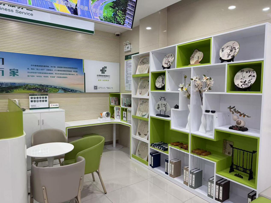 主题场景深度营造,凸显“清照文化”邮储特色。为让文化氛围贯穿网点服务全场景,该行以“清照文化”为设计主线,对网点核心区域进行特色化升级。阅读专区以“诗词+茶香”为主题,除精选清照诗词集、历史人物传记等书籍外,特别设置茶文化展示角,搭配邮储银行主题宣传物料,让客户在书香与茶香中感受文化气息;专区旁的文化壁橱聚焦清照文化,陈列诗词手札、主题书画作品及章丘本地文化摆件,不仅成为网点视觉亮点,更吸引大量社区书画爱好者前来交流,让网点成为兼具金融服务与文化交流功能的“社区文化小站”,彰显邮储银行“植根地方、服务民生”的定位。