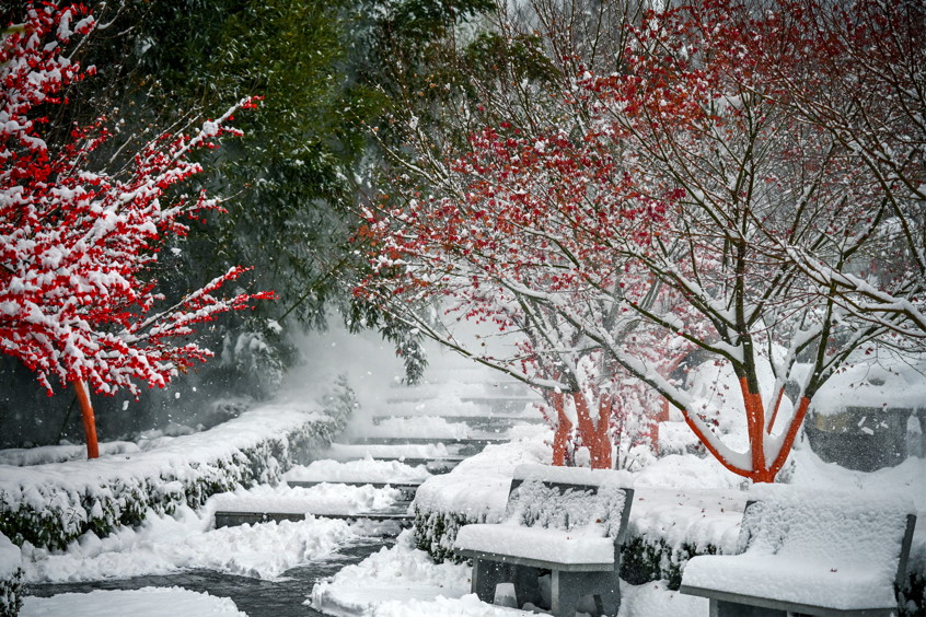 雪落无声,却把青铜山的每一处角落都揉进了浪漫。无论是覆雪的花簇雕塑,还是林间被雪铺满的小径,都藏着不期而遇的惊喜。这一场初雪,让青铜山大峡谷从山水秘境,变成了冬日限定的冰雪乐园。