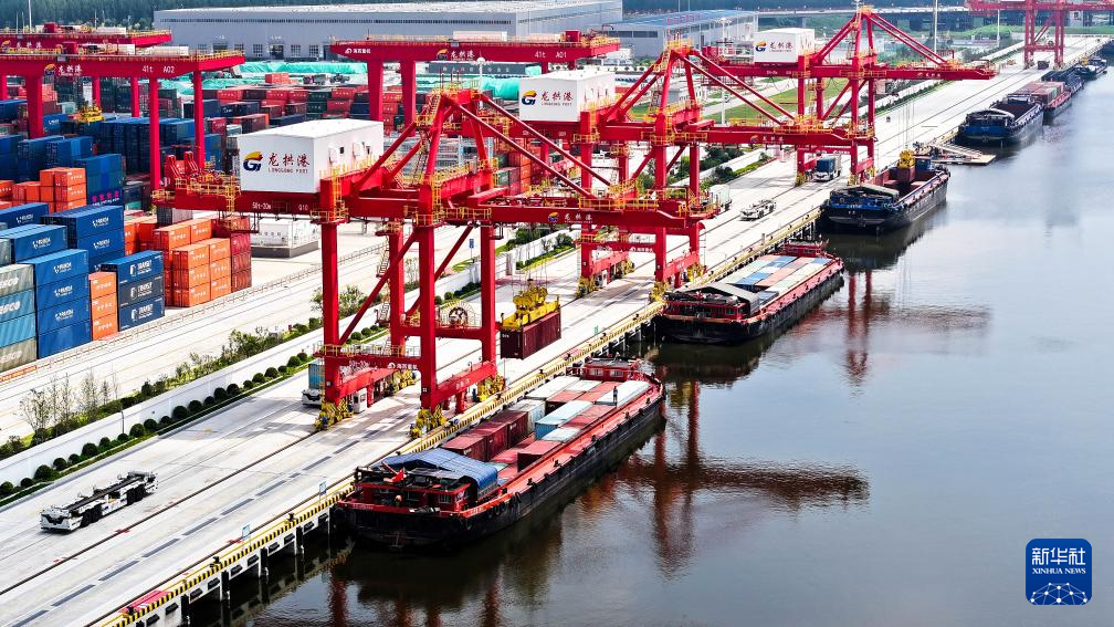 “以前传统内河码头存在抓取不准、效率不高等问题,现在靠‘智慧大脑’解决了。”济宁港航龙拱港有限公司调度指挥中心负责人顾强说,通过“AI+机器视觉”识别定位、系统协同指挥,无人平板车可与岸桥精准对位,实现全流程自动化作业。“现在,港口场桥作业效率比传统模式提升80%以上,货物周转更加顺畅。”