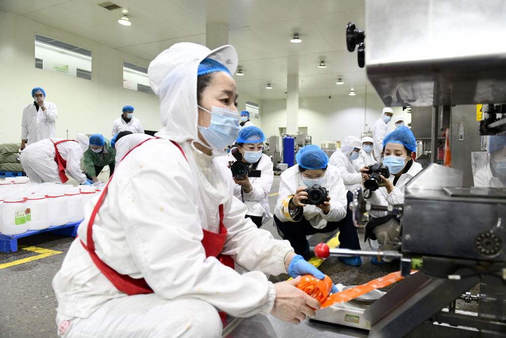 新华社签约摄影师和摄像师走进企业,聚焦乐陵市调味品产业发展。