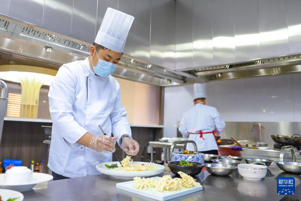 12月18日,在位于山东省乐陵市的山东民安食品股份有限公司,厨师利用魔芋产品研发新菜品。