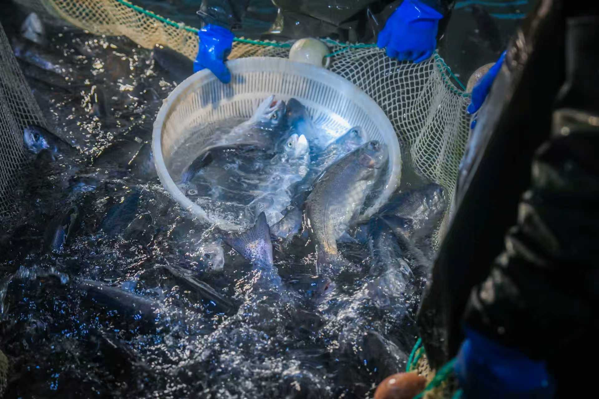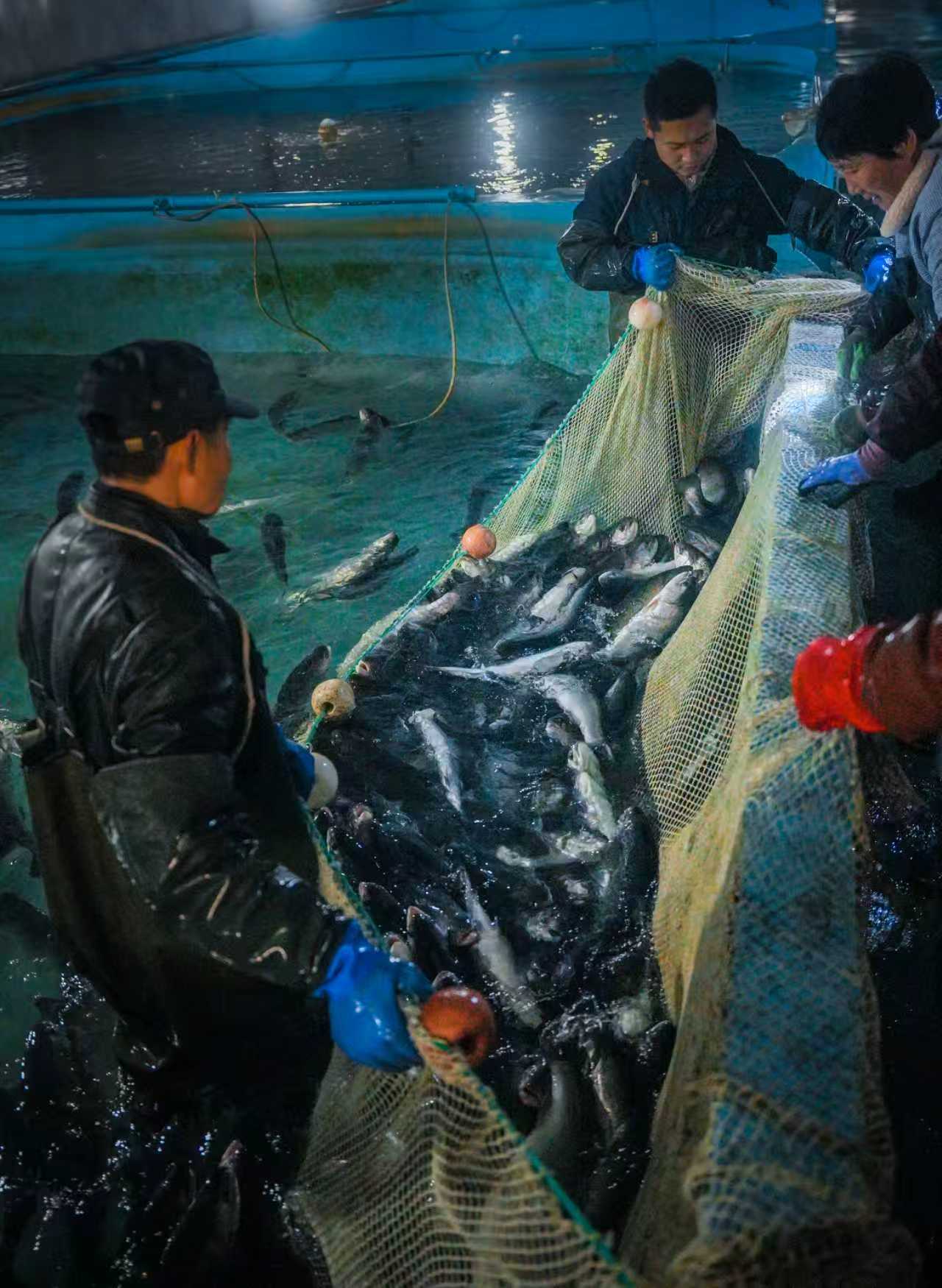 近日,日照市岚山区一批三文鱼苗集中起捕,发往外地一家远洋养殖企业。10万尾鱼“宝宝”规格整齐、活力充沛,工作人员随即对打捞上来的苗种进行称重、装车。