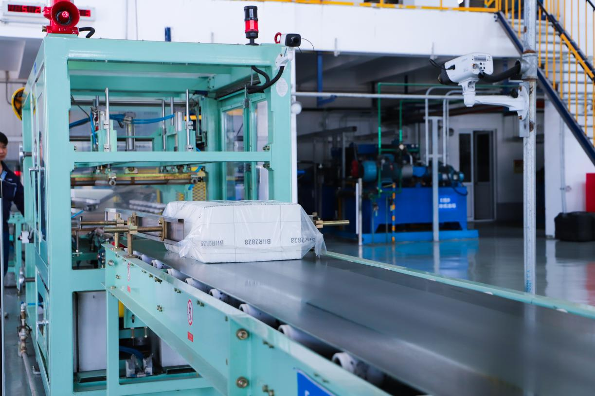 2025年10月,在京博橡胶生产车间,ISCC PLUS丁基橡胶在压块包装。受访企业供图