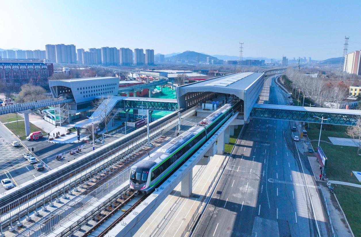 12月27日10时15分,济南地铁8号线列车从山东职业学院站驶出。
