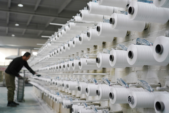 12月31日,在位于山东省临沂市沂南县双堠镇的蒙河双堠水库移民就业产业园,库区移民变身产业工人,在生产线上忙碌。