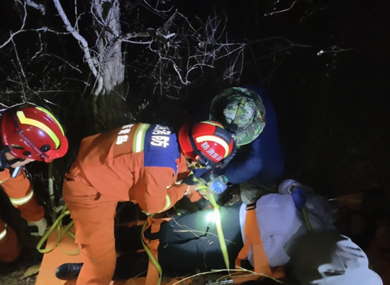 抵达现场后,消防救援人员快速确认被困人员具体位置,随即携带多功能担架、安全绳等救援物资,徒步攀爬至伤者所在区域,途中与赶来支援的社会救援力量顺利会合。