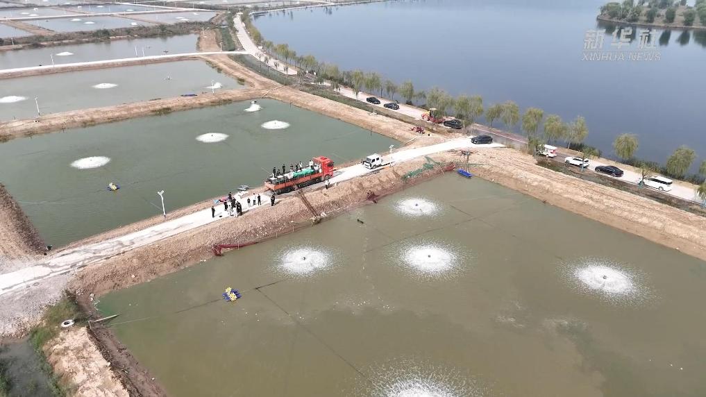 山东郓城:鲈鱼丰收 昔日塌陷地变身“致富塘”