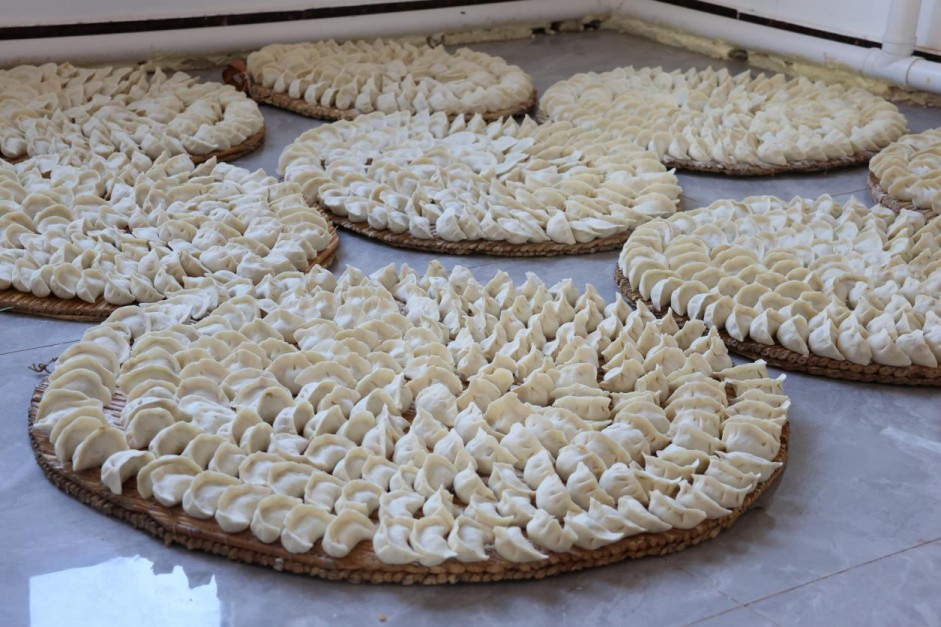 清晨的外石村薄雾未散,民宿广场已一派忙碌。“一百斤萝卜是咱村民自己种的,还有三十五斤猪肉、十斤粉条,豆腐也都是新鲜的,再加上一百斤新面粉,保证大家尝到最地道的乡村味道!”村民熊兰芬一边分发馅料一边介绍。作为外石村“免费大锅菜”品牌的延伸,本次饺子宴延续“公益暖心、邻里共享”理念,不仅邀请村民免费品尝,还热情款待前来游玩的游客。二十余位村民齐动手,包出的饺子摆满了五十多个盖垫,数量较去年翻了近一番。