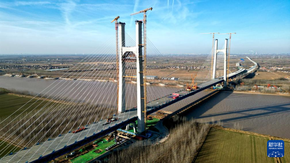 12月31日,津潍高铁东营黄河公铁大桥顺利合龙,为后续铺轨通车奠定基础。据了解,该桥是津潍高铁全线的重点控制性工程,全长2230.4米,由主桥、副桥和引桥三部分组成,下层为双线高速铁路,上层为双向六车道一级公路。津潍高铁是国家“八纵八横”高铁网中京沪通道和沿海通道的重要组成部分,也是京津冀协同发展、连接山东半岛和长三角地区的重要交通干线。新华社发(周广学摄)