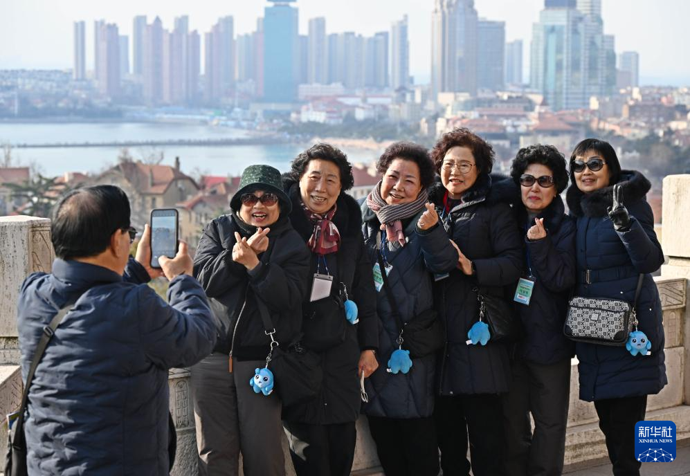 当日,逾百名韩国游客抵达山东青岛参加新年跨年游活动,该旅游团行程涵盖工业文旅、山海景观、特色商圈、温泉康养等多种业态。新华社记者 李紫恒 摄