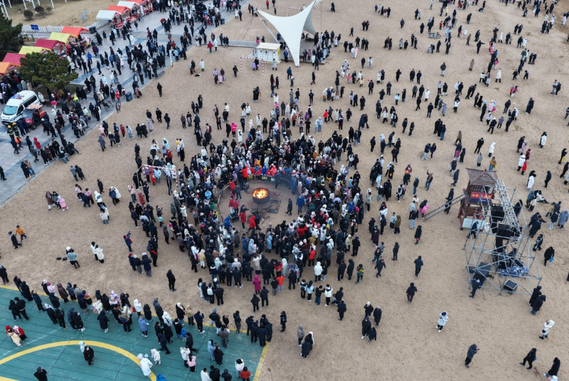 随着篝火火苗的升腾摇曳,大家载歌载舞,将现场的气氛推向高潮。“光阴的故事”元旦日出歌会把舞台搬到了海边,《红日》《这世界那么多人》《祝你平安》等家喻户晓的经典旋律此起彼伏,涛声和着歌声,传递出人们对新年的美好希冀和祝福。“追光而遇”迎日启新巡游演出、“沐光而行”全民健身活动、新年游园会等多元场景似一幅流动的画卷,沿着海岸线铺展开来,民俗展演、美食体验、非遗展销、打卡互动等表演令人目不暇接。文旅体会客厅里,市民游客可领取文旅“显眼包”、Logo发夹、体育彩票、手绘地图。心愿墙旁,人们虔诚写下新年愿望。来日照“晒”太阳主题摄影展定格下了大家各自心目中最美的太阳。