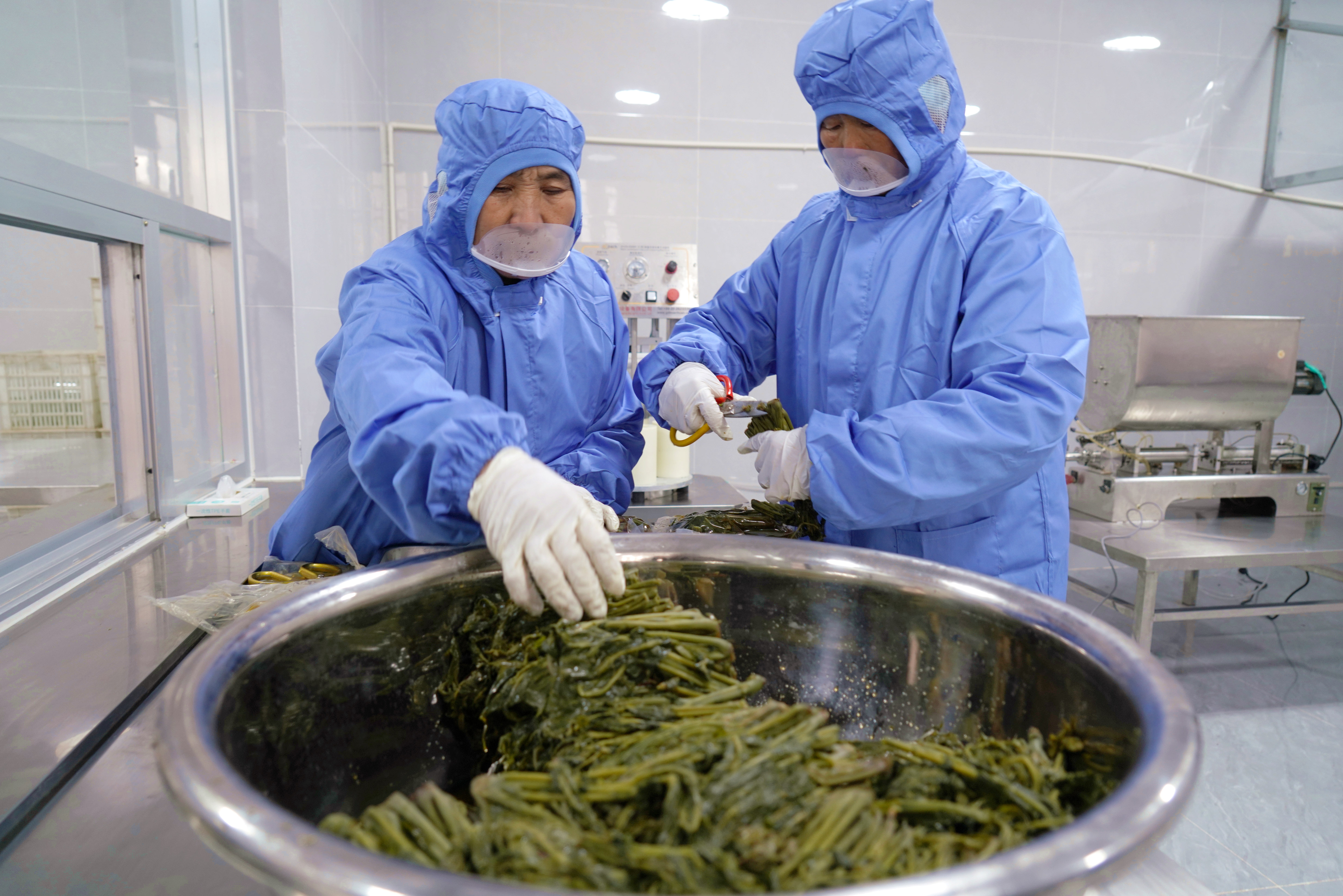 春节临近,山东省沂南县岸堤镇泉水庄村香椿深加工车间忙着生产,供应节前市场。该镇地处沂蒙山区腹地,生态环境良好,有种植香椿的历史传统。近年来,该镇积极引导香椿深加工产业发展,通过“合作社+合伙人+基地+农户”的方式,建成香椿深加工“共富工坊”,扩大香椿收储能力,开发出香椿酱等产品,带动集体增收、村民致富。(尹君 张萍)