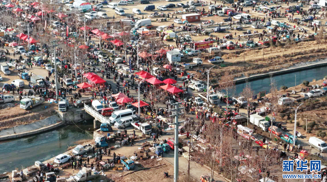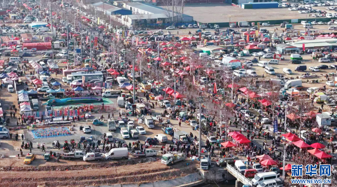 千余个摊位次第铺开,场面颇为壮观(无人机照片)。新华网发