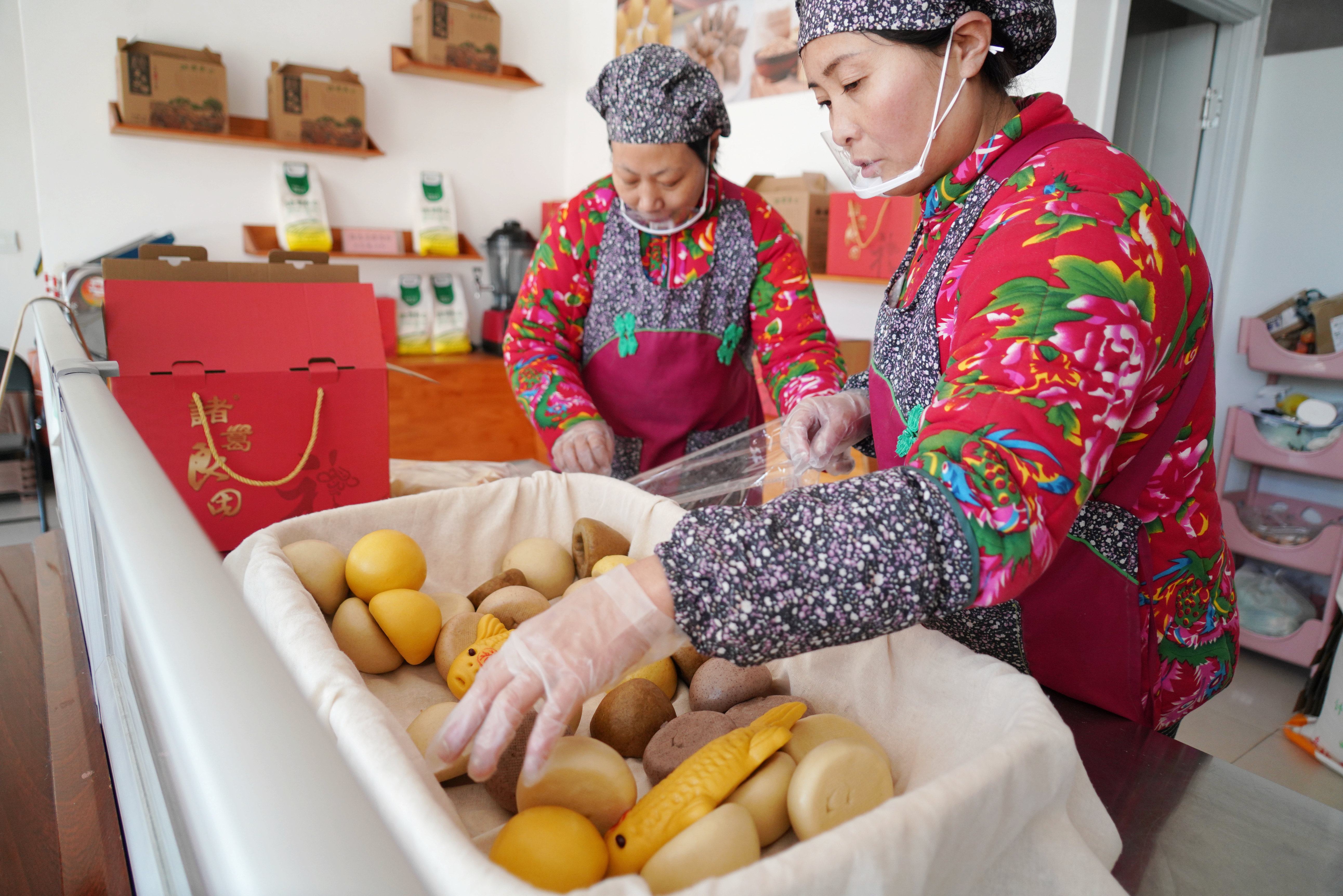 2026年1月12日,走进山东省沂南县砖埠镇诸葛良田“共富工坊”,村民在搬运刚出锅的花样馒头。