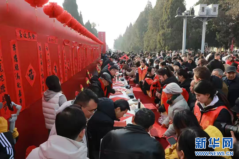 活动现场,书法家与优秀青少年书法作者共同挥毫泼墨,为群众书写春联和“福”字。红纸墨香间,书家们以笔墨传递祝福,群众热情参与、有序领取,场面喜庆热烈。