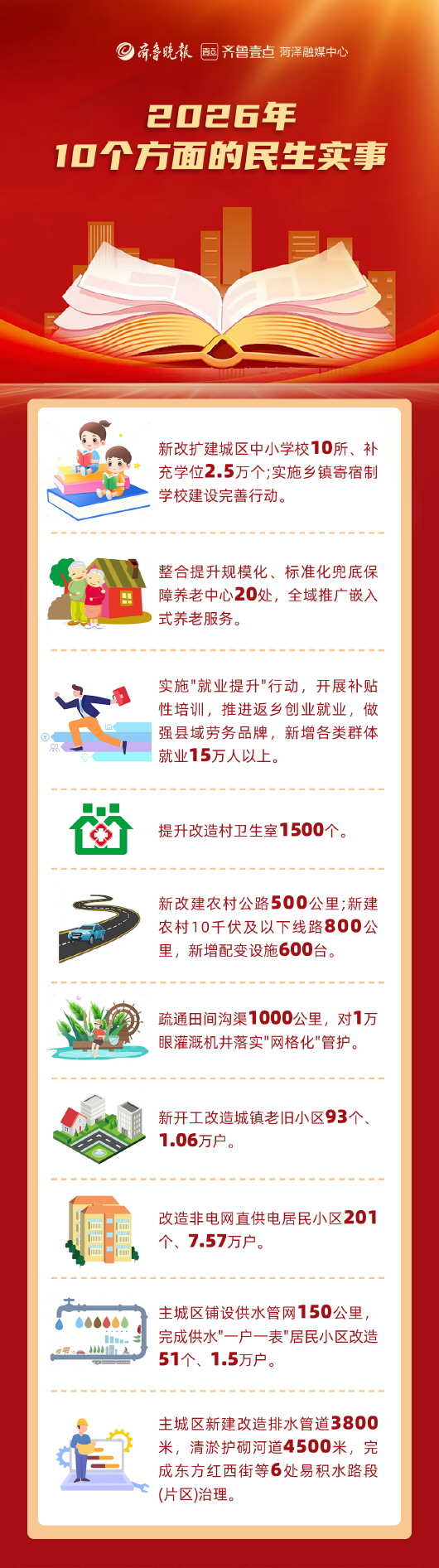 民生无小事,枝叶总关情。2026年菏泽以民生十件实事为抓手,将沉甸甸的民生关切化作实实在在的行动——从老旧小区改造让居住更舒心,到“家门口”的优质教育与医养服务暖人心;从“按需亮灯”的精细治理护平安,到返乡创业的广阔舞台聚民心。一件件实事精准对接群众需求,把政策温度转化为生活质感,让好日子在柴米油盐的便利中、在衣食住行的改善里,稳稳扎根群众心坎。
