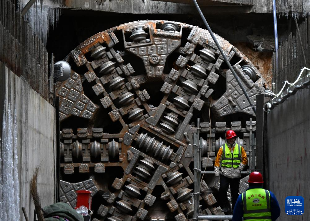 1月21日,建设者在青岛地铁5号线四方厂站接收井等待右线贯通。新华社记者 李紫恒 摄