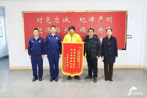 为报答两位小哥的救命之恩,老人的儿子亲笔写下感谢信,还定制了印着“火海救人恩重如山 危难相助铭记于心”的锦旗,送到了淘宝闪购站点和东港消防救援大队海曲路消防救援站。