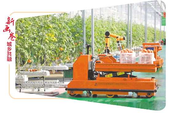 在寿光市现代农业高新技术试验示范基地,采摘机器人正在采摘番茄。(记者 石如宽 通讯员 张永升 报道)