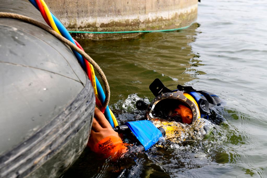 中国铁路济南局集团有限公司铁道战备舟桥处桥梁水下检测队,是全国唯一一支潜行于水底的“桥梁医生”团队,肩负着全国铁路桥梁水下结构检测与维护的重任。面对水域环境对桥梁水下基础可能造成的侵蚀与损伤风险,这支队伍以“蛙人”人工潜水探查为基础,创新引入水下检测机器人技术,构建起“人机协同”的作业模式,为铁路桥梁安全筑起坚实的“双保险”防线。自2016年成立以来,“桥梁医生”们已累计完成400余座桥梁的水下“问诊”工作。 新华社记者 郭绪雷 摄pagebreak