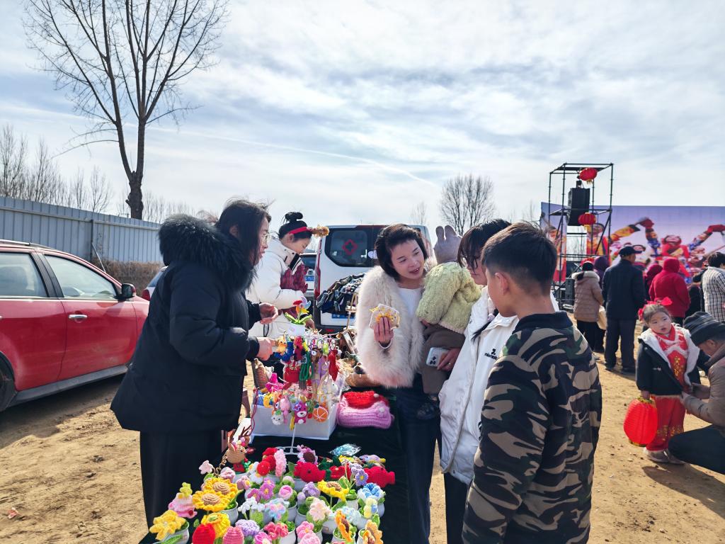 记者走访发现,除了惠民电影放映之外,越来越多的文化元素融入乡村市集的烟火气中。洙边大集期间,小戏秧歌惠民演出、非遗手造展销和图书市集等同步开展。“大集期间的秧歌、戏曲等节目,都是大家伙业余时间排练、自导自演的。”洙边村党支部书记陈庆英说。