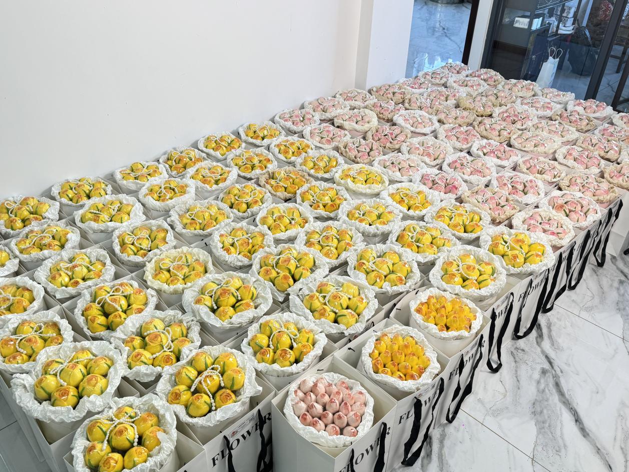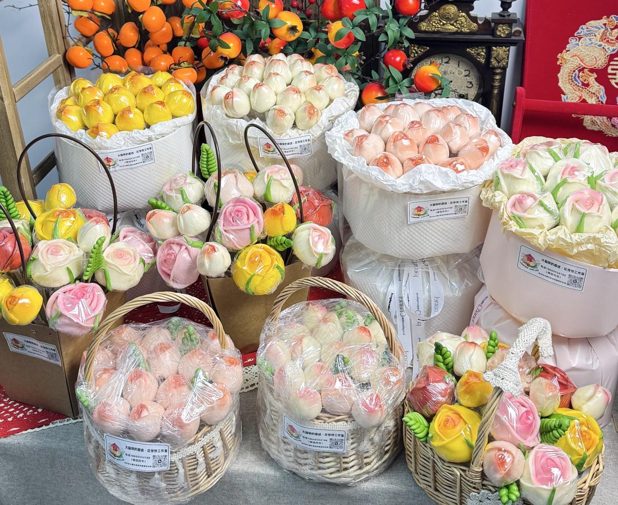 “老板,再订36个饽饽花束,送朋友用!”“这个饽饽花束当做伴手礼可太有面儿了!五一婚礼想定50份!”……