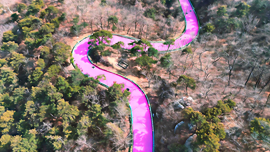 春日的沂山,不再只是苍翠的林海。今年春季,该景区重磅推出“沂山繁花秘境”项目。项目充分利用沂山高达98.6%的森林覆盖率与海拔520米以上的独特山势,通过艺术化的造景手法,将缤纷花卉与山水自然完美融合。漫步其中,游客仿佛坠入斑斓的油画世界,一步一景,处处皆是春色。这片如梦似幻的秘境一经亮相,便迅速成为社交媒体上的新晋网红打卡地,吸引无数游客驻足留影,让“上春山”不仅是一场登高望远,更是一次沉浸式的视觉洗礼。