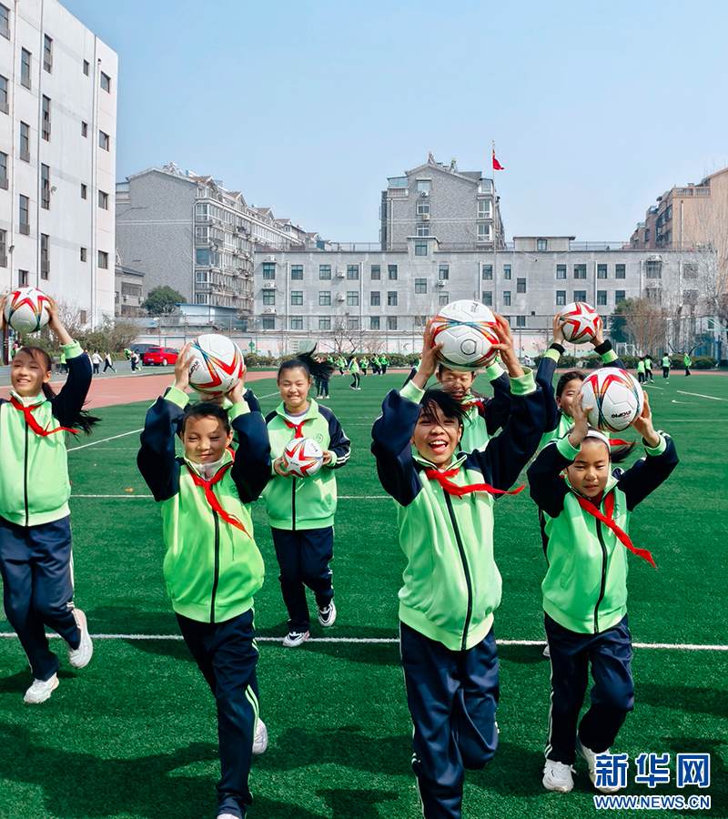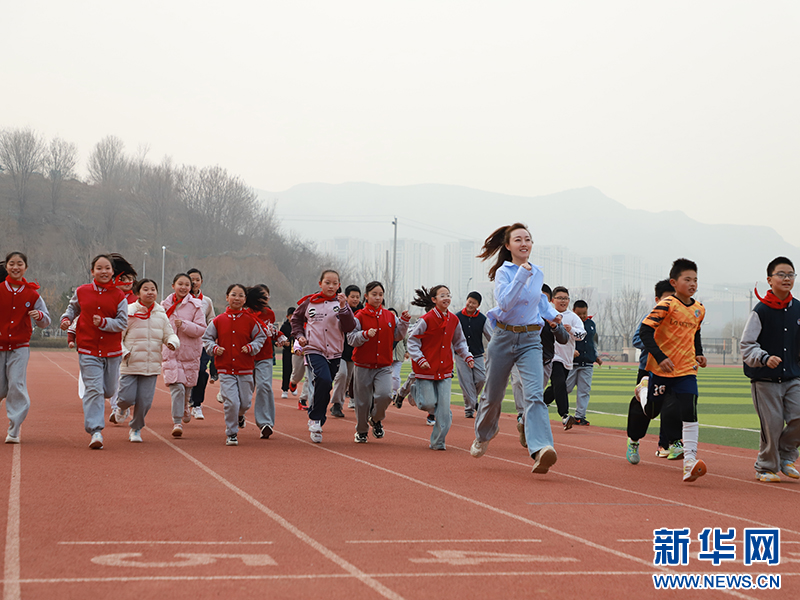 济南市市中区润泽学校操场上,师生同跑。新华网发
