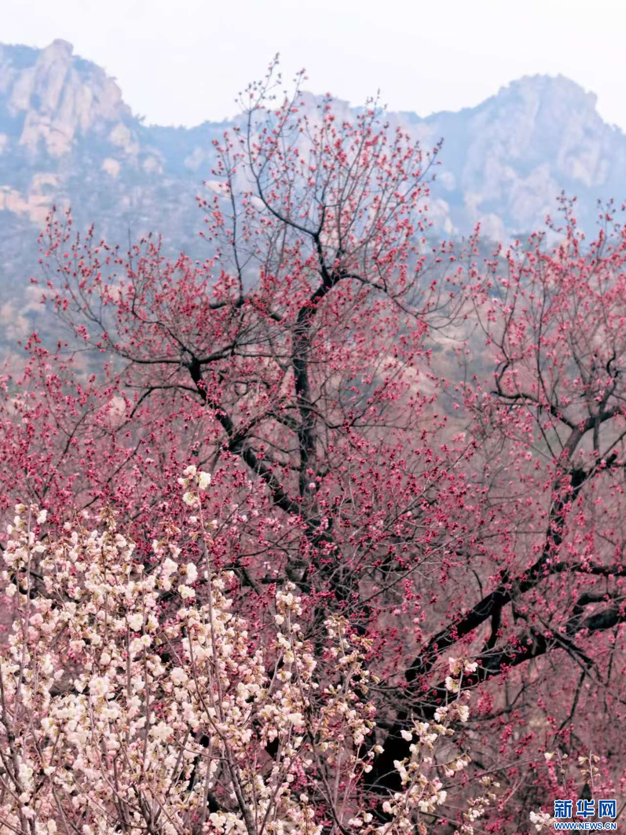 在山东省五莲县叩官镇大旺村,漫山樱桃花盛放。新华网发