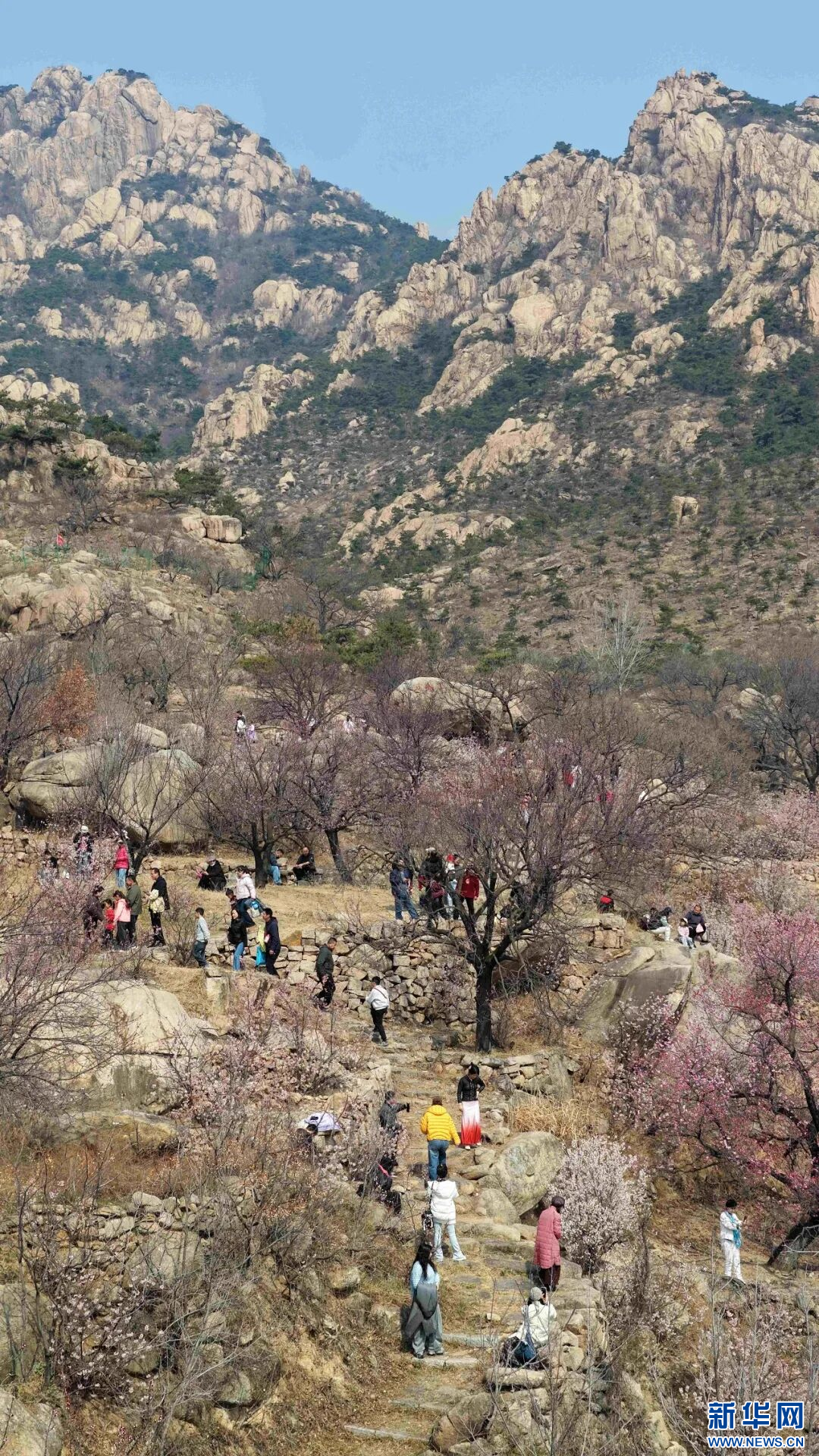 游客们沿着石阶漫步赏花,打卡留念。新华网发