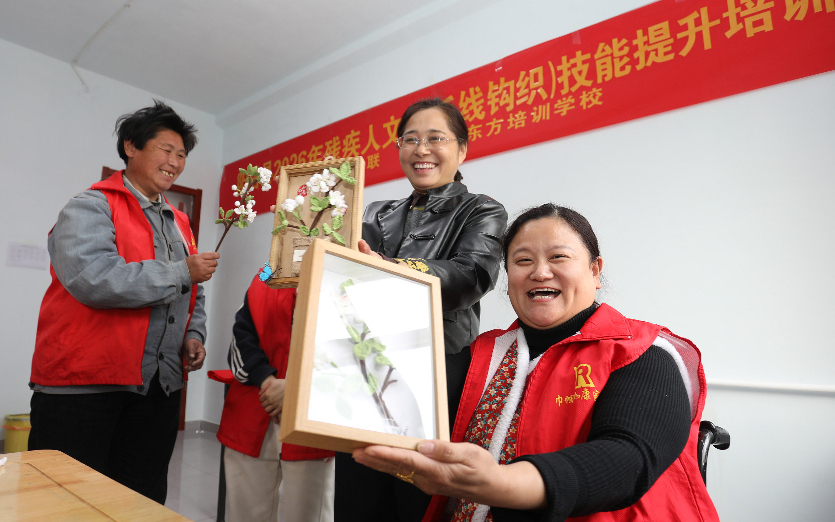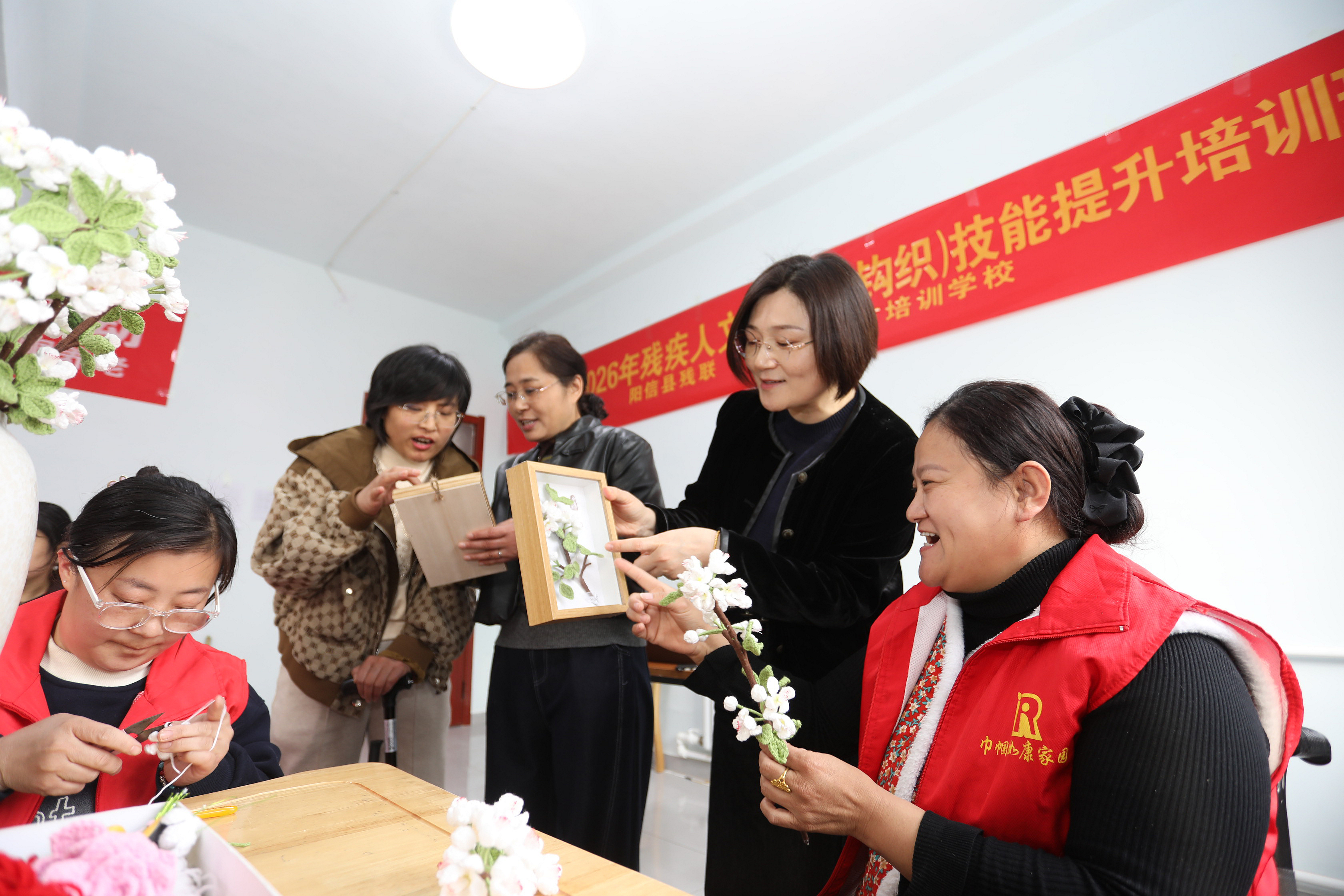 为助力第37届梨花会,促进残疾人就业增收,阳信县残联、阳信新东方职业培训学校于3月25-28日,在阳信县聚爱之家托养服务中心开展了2026年残疾人文创(毛线钩织)技能提升培训。