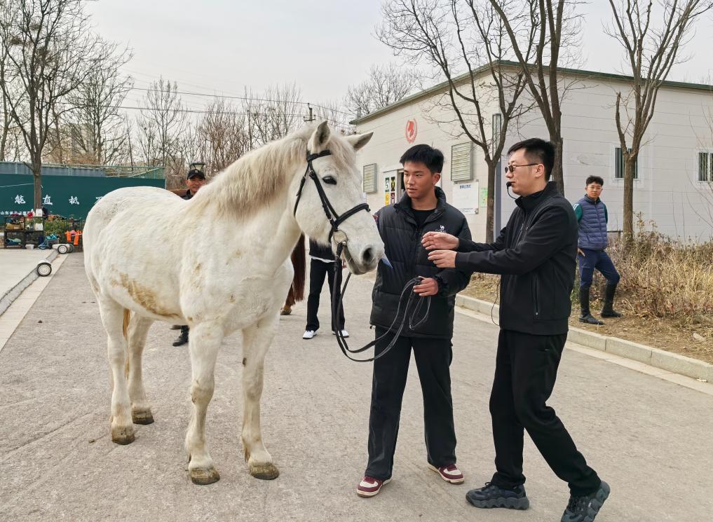 马术是一门对场地、马匹、师资要求很高的专业。许志亮介绍,由于校内没有马匹和马场,教学缺少硬件条件,学校借助俱乐部的场地和专业教练的力量,有效弥补了专职教师理论功底较强、实践经验相对不足的短板,让骑马教学从“对着PPT讲”走向“实战练兵”。“理论教学和笔试无法准确评估学生的骑乘水平。我们反复告诉学生,每匹马的性情都不一样,但如果不与马真实接触,学生很难真正体会和掌握其中差异。”