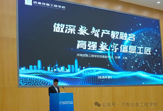 3月27日,2026年度山东省数字教育工作会议暨“人工智能+教育”试点推进会在济南召开。济南信息工程学校作为全省唯一中职学校代表,受邀在会上作典型发言。学校党委副书记、校长王焐以《做深数智产教融合 育强数字信息工匠》为题,向全省教育系统分享了学校数智化转型的创新实践。