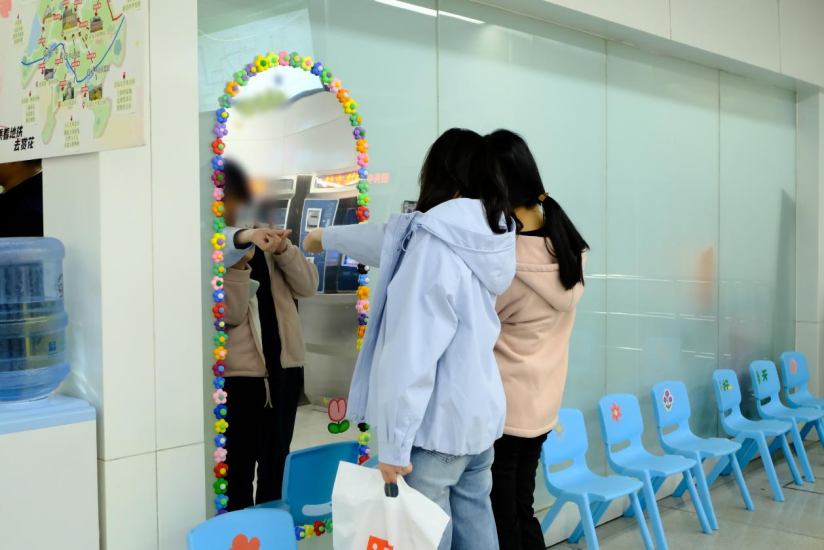 站内循环播放赏花主题广播,声景相融,营造沉浸式春日浪漫氛围。车站还在站厅及B出入口站外设置花朵造型化妆镜,方便乘客拍照打卡,定格春日限定美好。