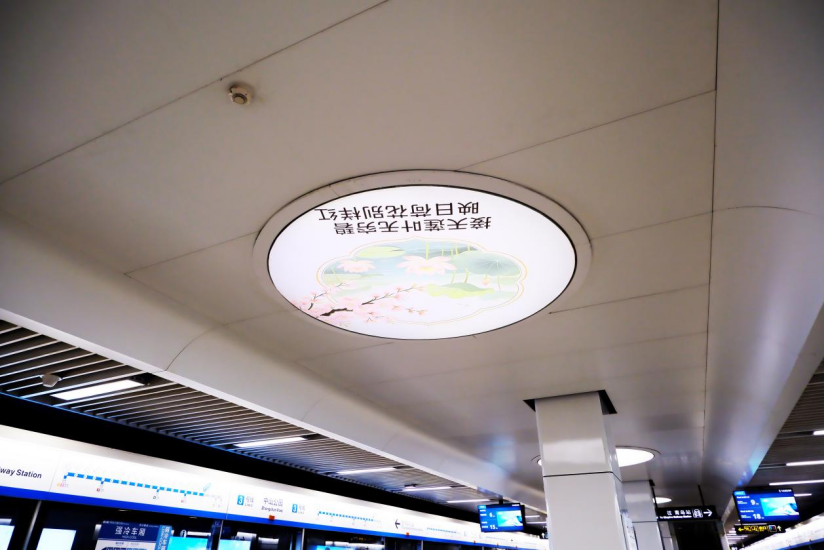 站厅顶部以氛围灯打造光影意境,营造出“人在画中游”的唯美视觉体验,移步换景间尽是温柔。