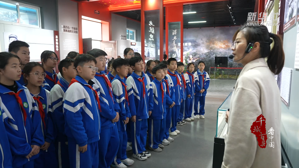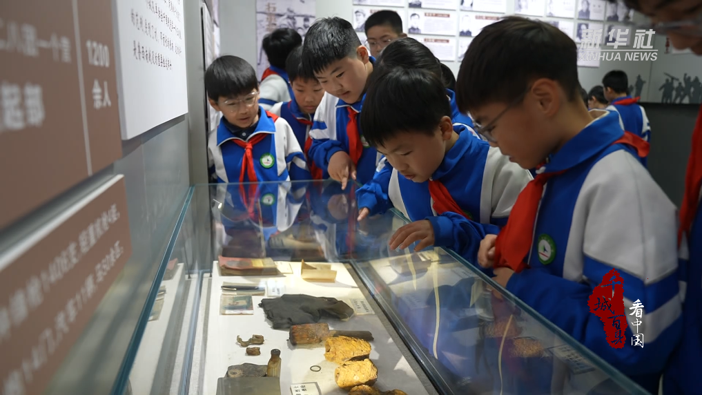 菏泽市定陶区各学校少先队员敬献素花、为碑文描金,在纪念碑前聆听历史事迹,重温峥嵘岁月。