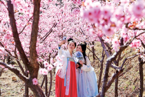 汉服秀、国风市集、花卉文创则成为今年济南花朝节的三大亮点。在各大公园的花事现场,身着汉服的市民游客随处可见,襦裙飘飘的少女穿梭在樱花树下、泉池边,与春日繁花构成一幅绝美的国风画卷,汉服租赁、旅拍也成为春日文旅的热门消费项目。国风市集里,花朝美食、手作花艺、特色文创错落排布,备受市民游客青睐,既藏着泉城的花韵,又带着济南的泉味,让游客在沉浸式体验中感受济南的独特魅力。